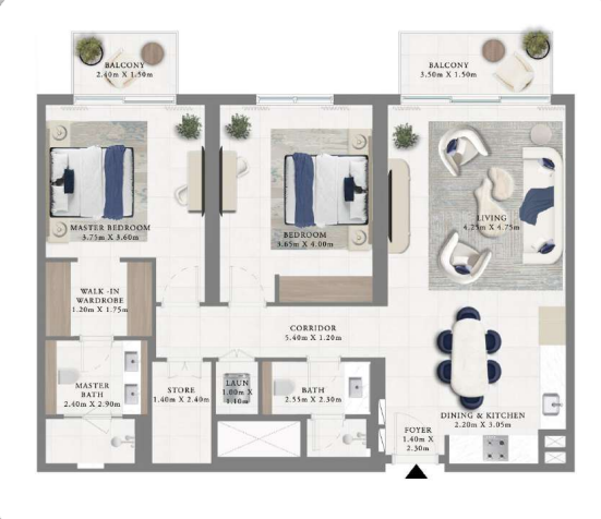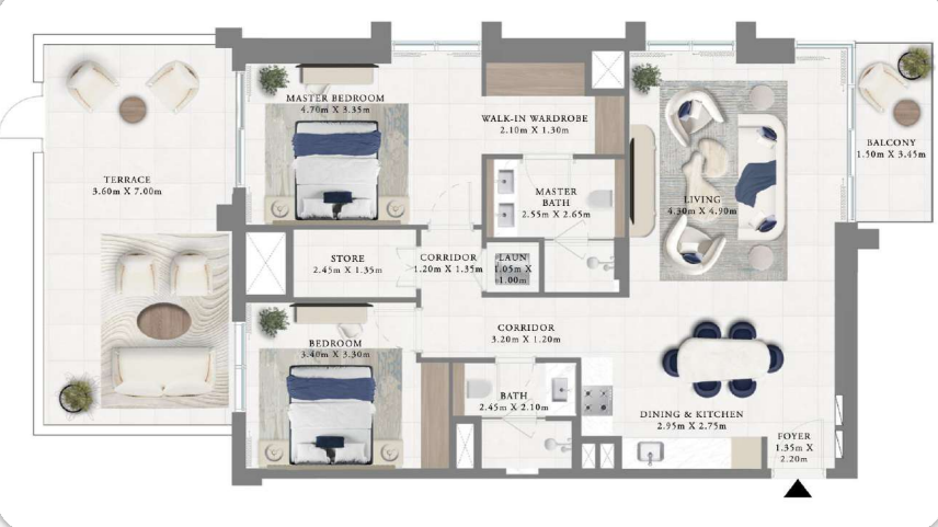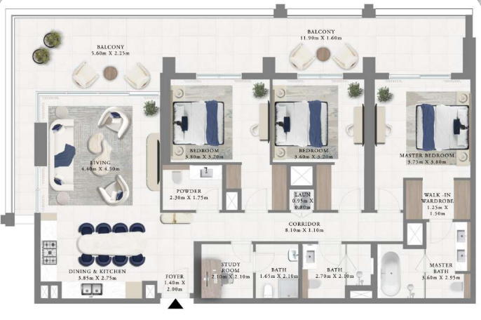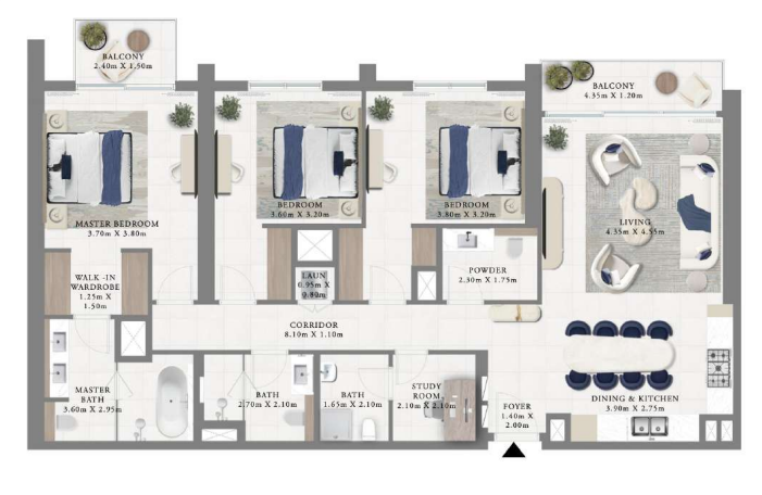 All apartments with light finishes have balconies that can be used for both work and relaxation.